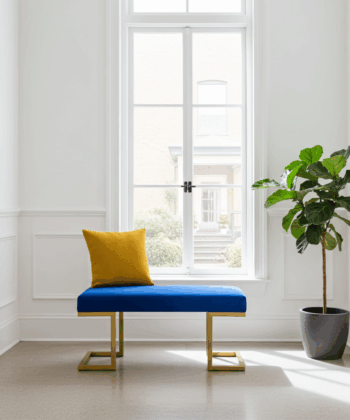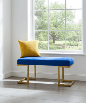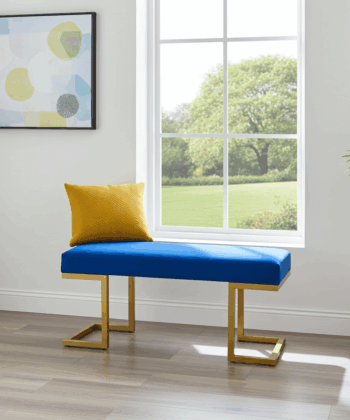 Blue Velour Bench with Gold Frame: Elegant Seating for Irish Homes