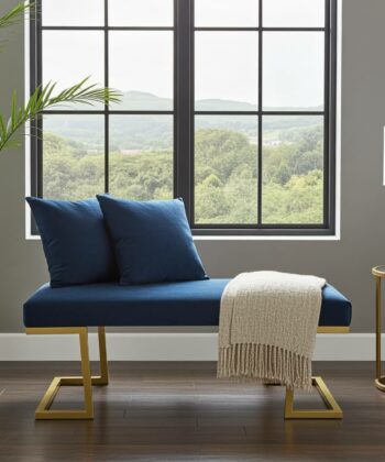 This sophisticated bench adds elegance to any space with its rich blue velour upholstery and striking gold metal frame1. Additionally, the included decorative pillows provide extra comfort and style versatility.