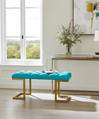 Premium Tufted Turquoise Bench with Gold Metal Frame for Irish Homes