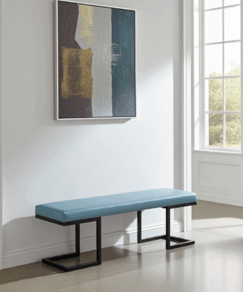 Blue Eco Leather Bench with Black Metal Frame – Modern Upholstered Seating