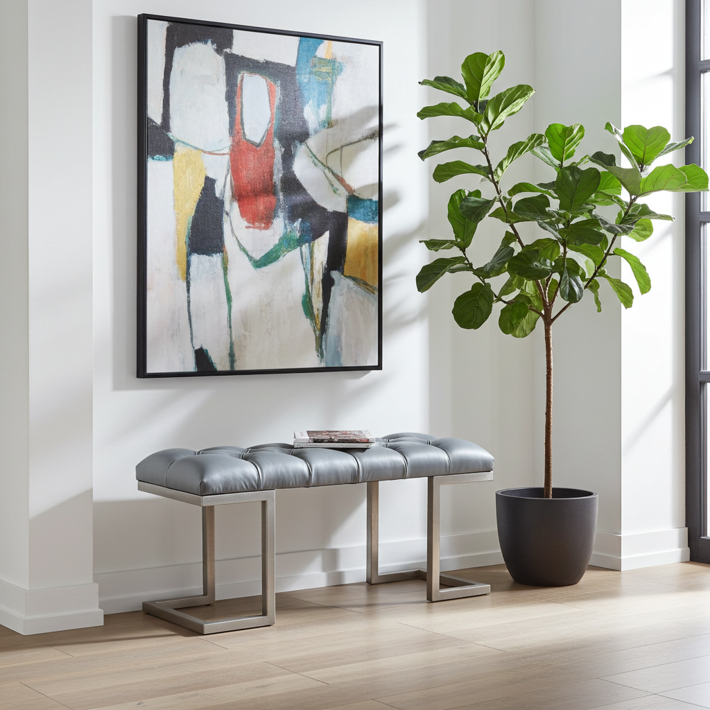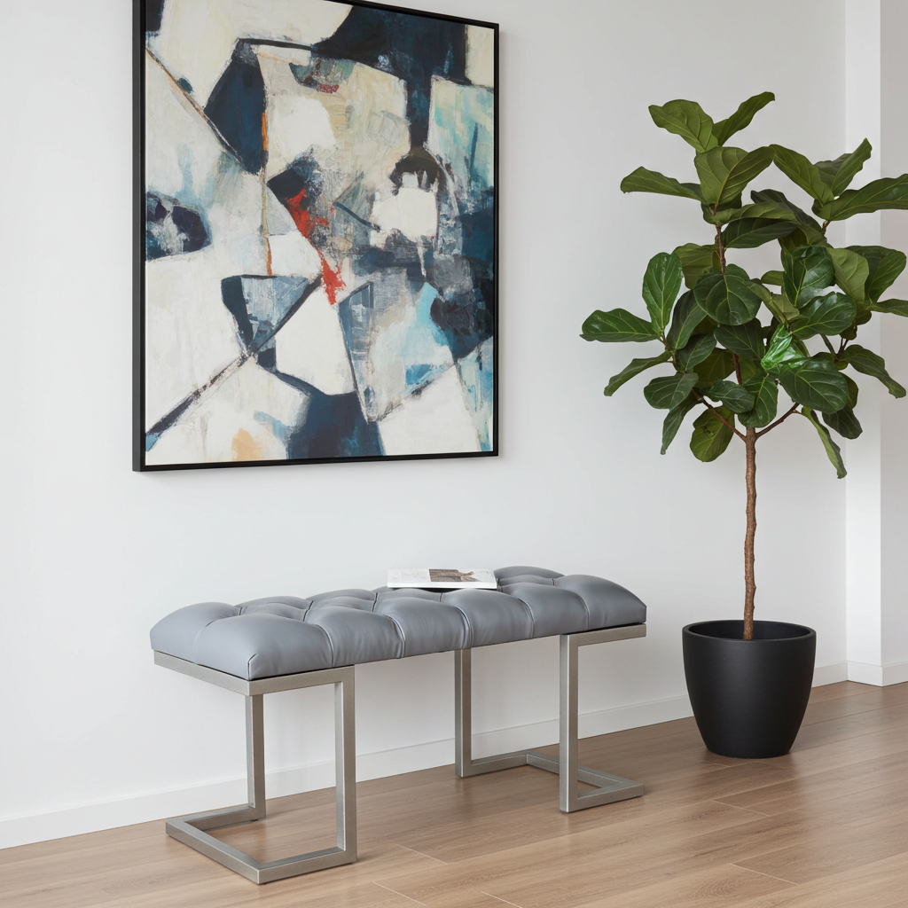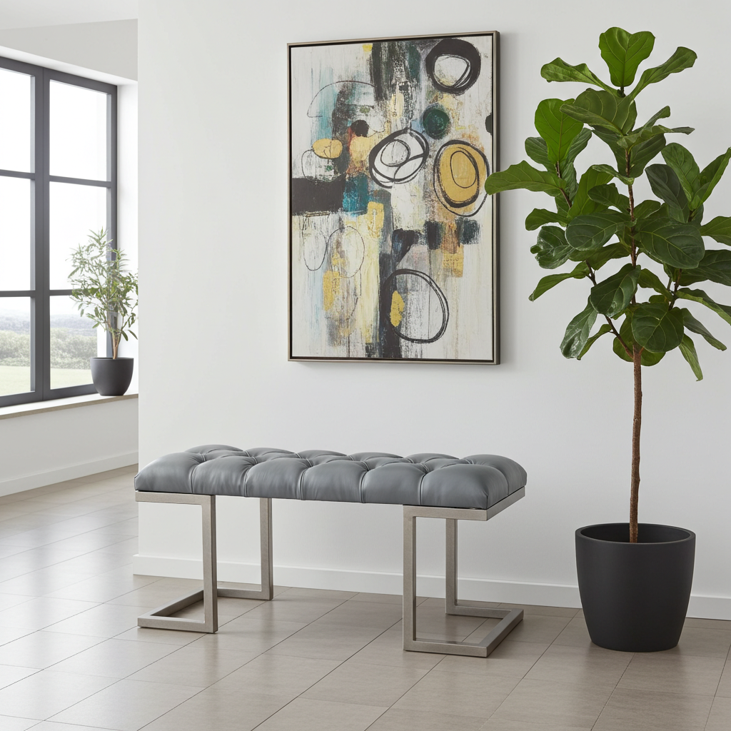 Stylish Tufted Upholstered Bench with Chrome Metal Frame for Modern Irish Homes