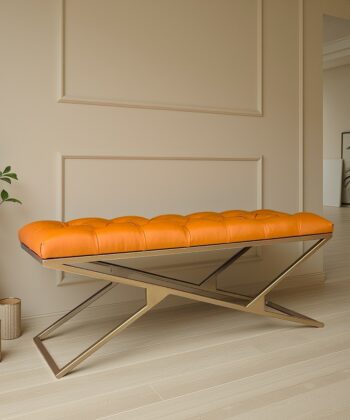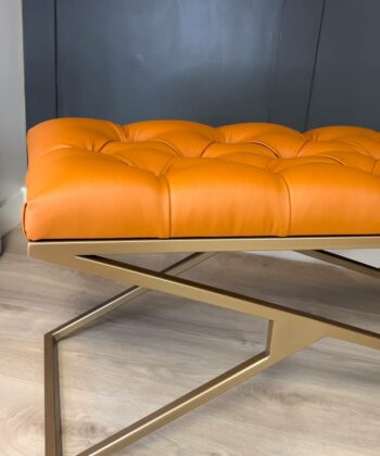 Experience the ultimate in style, comfort, and durability with our handmade eco leather bench. Crafted with a premium gold powder-coated metal frame, this bench features a unique one-piece construction—completely free of screws—for maximum strength and a seamless, modern look. Designed to support up to 250kg, it’s both robust and elegant.