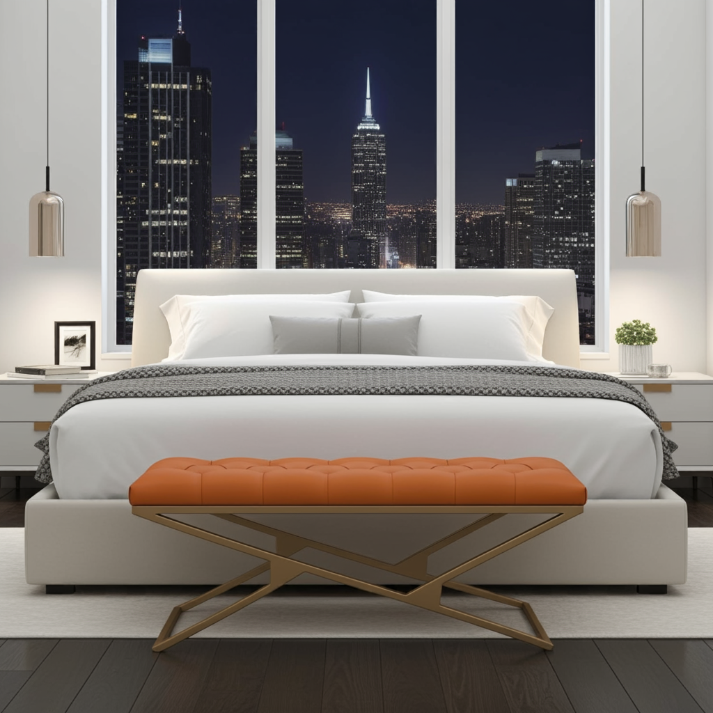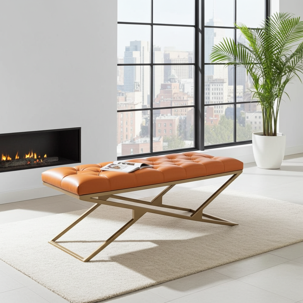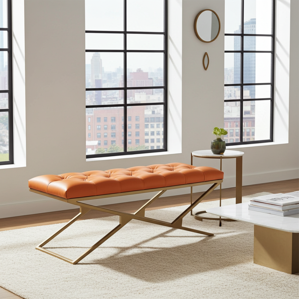 Experience the ultimate in style, comfort, and durability with our handmade eco leather bench. Crafted with a premium gold powder-coated metal frame, this bench features a unique one-piece construction—completely free of screws—for maximum strength and a seamless, modern look. Designed to support up to 250kg, it’s both robust and elegant.