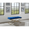 This fully handmade bench features a plush green velvet seat and a striking gold powder-coated metal frame in a modern double X-style design, making it a standout accent for any room. The vibrant green upholstery adds a touch of sophistication and color, while the robust gold frame ensures durability and a contemporary look. Thanks to its compact size, the bench fits well in hallways, living rooms, bedrooms, or entryways, offering both style and functionality. The powder-coated finish increases resistance to wear and tear, so the bench remains beautiful and sturdy over time. Its versatile design allows it to complement a wide range of interior styles, from modern to classic. Each bench is meticulously crafted for quality and longevity, providing both comfort and elegance wherever it is placed.