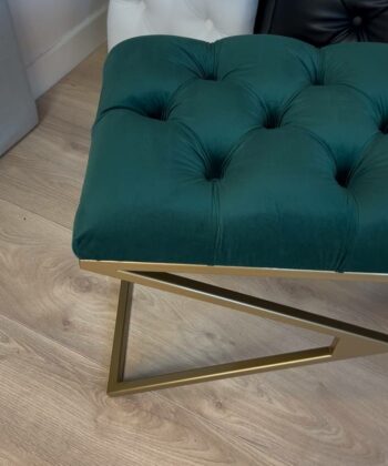 Elegant Handmade Green Velvet Bench with Gold Powder-Coated Metal Frame – Modern Double X-Style, 100x40x50cm