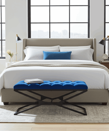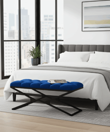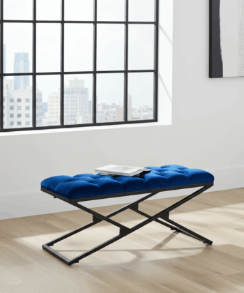 Blue Velvet Bench for Modern Irish Homes – Double X Black Metal Frame
