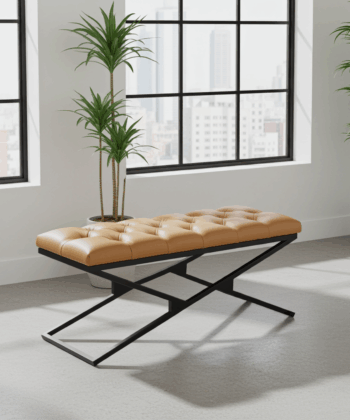 Brighten your space with the Metal-Framed Bench 100x40cm Double X Style, featuring a vibrant mustard yellow eco leather seat and a sleek black powder-coated metal frame. This fully handmade bench combines bold colour, comfort, and durability with a striking double X design. It’s a perfect fit for hallways, living rooms, bedrooms, or any area that needs a modern and functional accent. The mustard yellow upholstery adds warmth and personality, while the black frame delivers a contemporary, polished look.