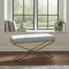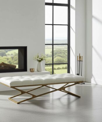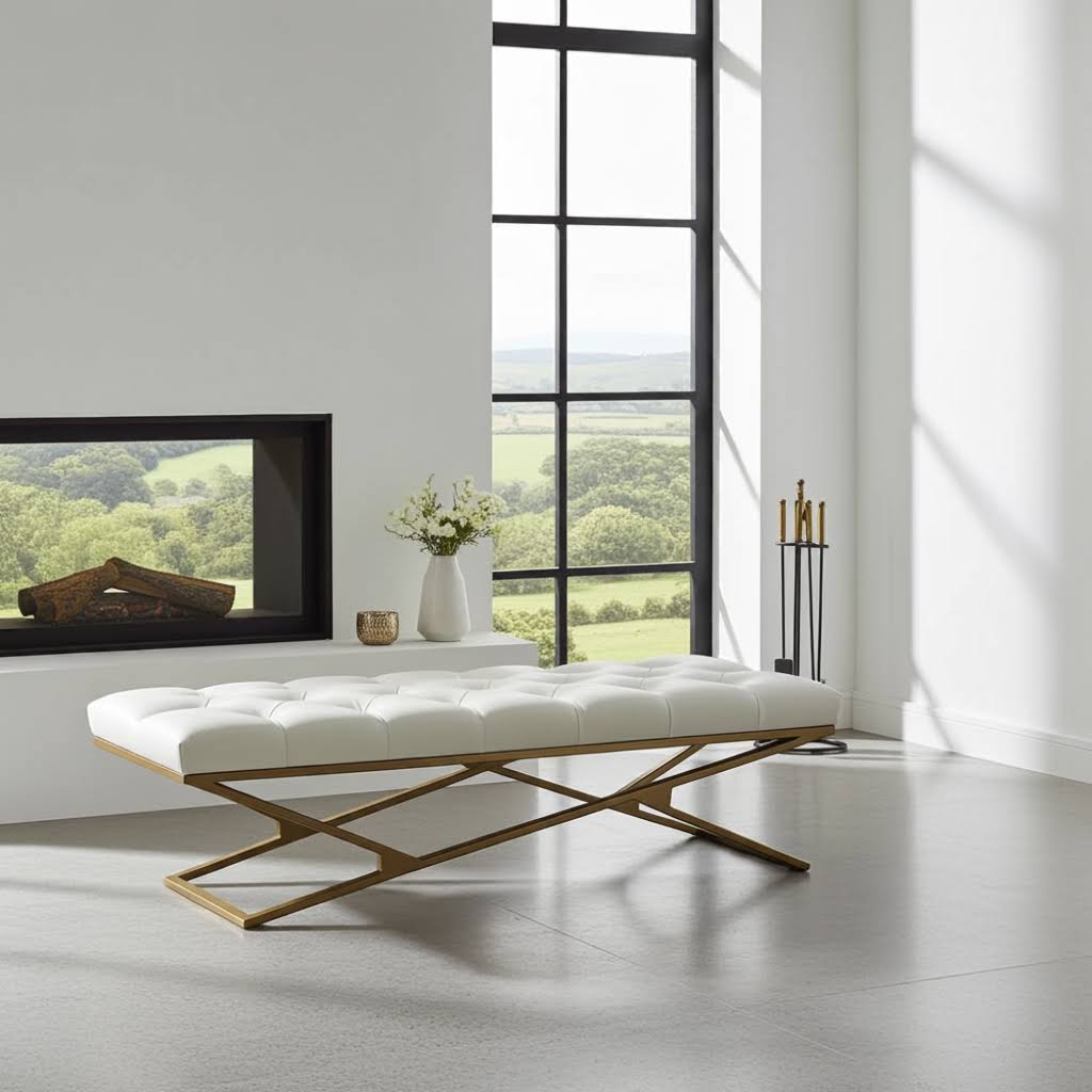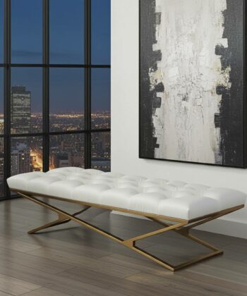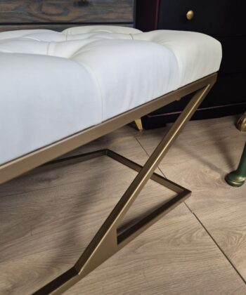 Metal-Framed Bench 140x40cm Gold Frame / Eco leather / White / Chesterfield