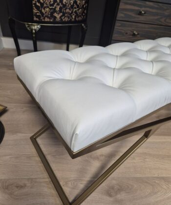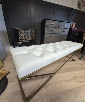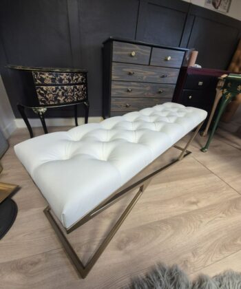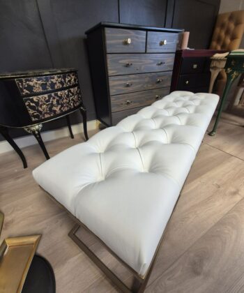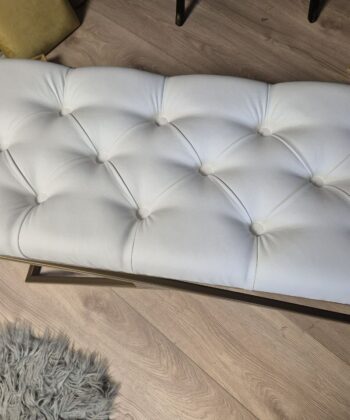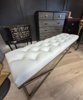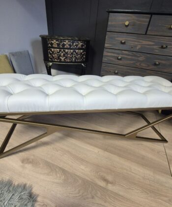 Metal-Framed Bench 140x40cm Gold Frame / Eco leather / White / Chesterfield