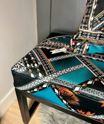 The meticulous handcrafted construction emphasizes artisanal quality and precision assembly techniques throughout. Additionally, the velvet upholstery requires regular maintenance to preserve its vibrant pattern clarity and luxurious texture. Moreover, the powder-coated frame finish provides long-lasting protection against environmental wear. Furthermore, the striking geometric pattern creates dramatic appeal that serves as a cultural focal point in interior compositions.