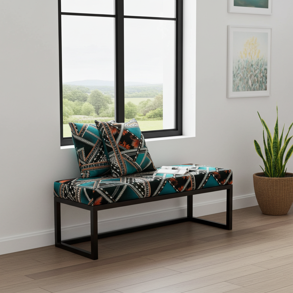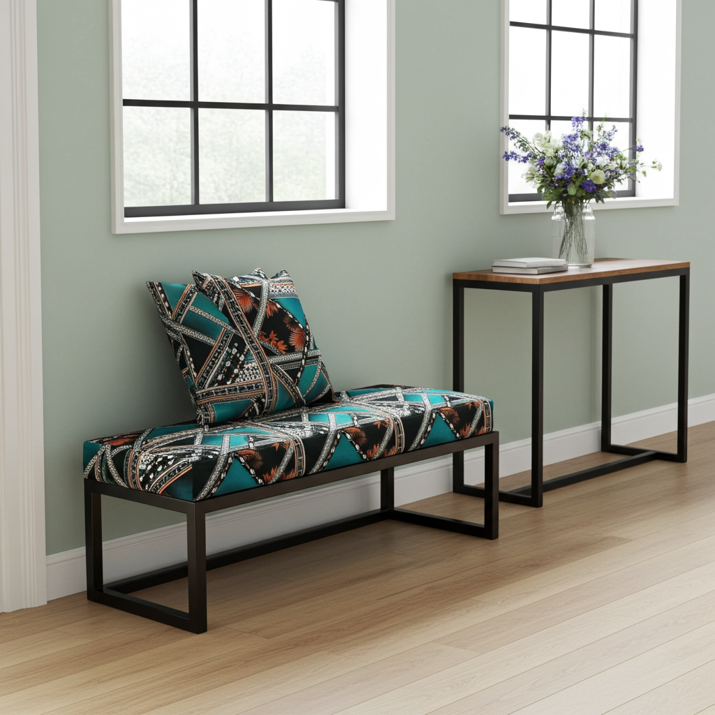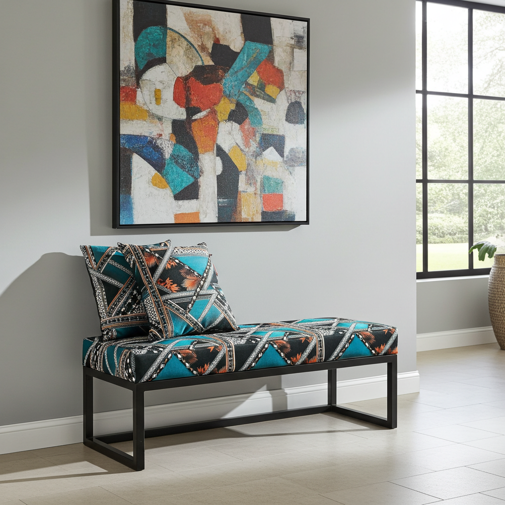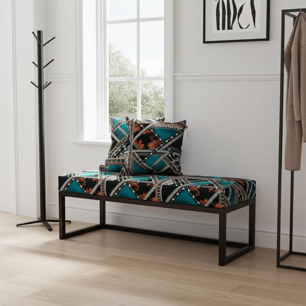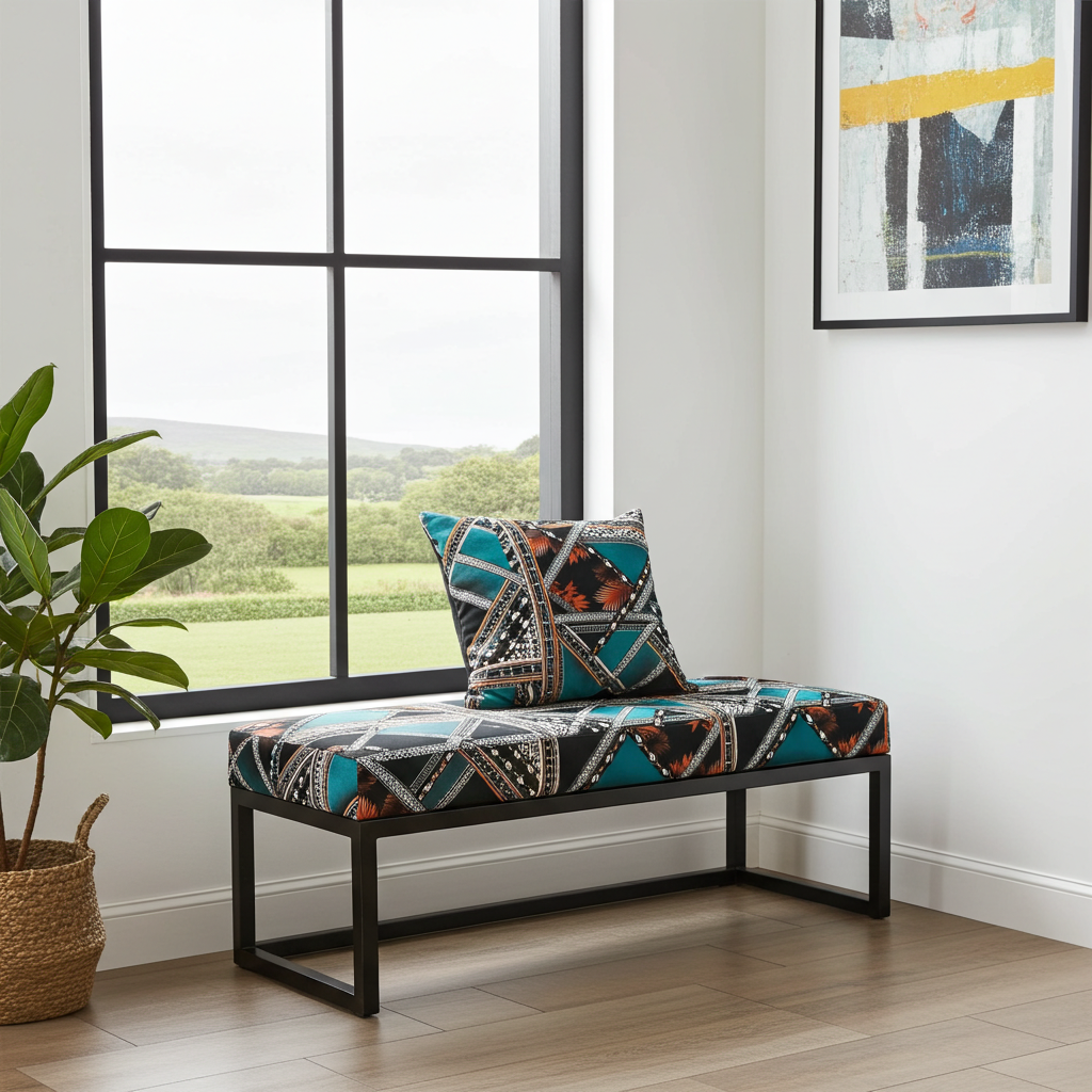 Premium Handcrafted Southwestern Geometric Velvet Bench with Black Powder-Coated Steel Frame – Statement Seating Solution for Contemporary Irish Homes