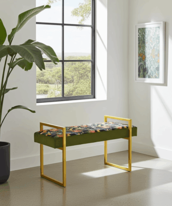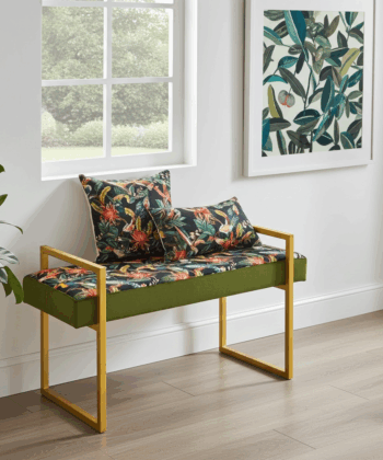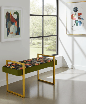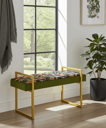 Tropical Velvet Bench – Gold Metal Frame & Floral Velvet Upholstery