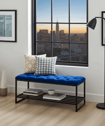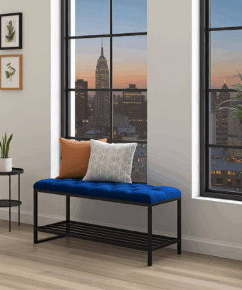 Make a stunning first impression with this luxury tufted velvet bench. Combining sophisticated design with everyday practicality, it’s the perfect addition to your hallway, entryway, or bedroom. The bench features a plush, deep-buttoned seat upholstered in a vibrant royal blue velvet, which provides a comfortable place to sit while putting on or taking off your shoes.