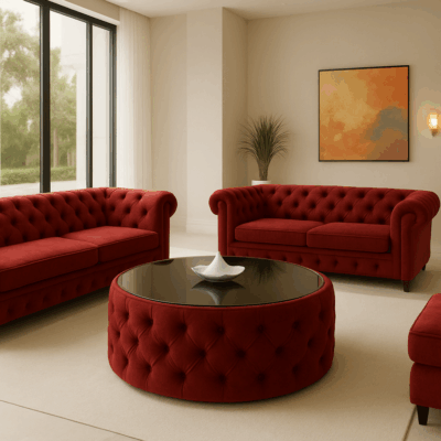 Upholstery: High-quality velvet fabric with deep tufting