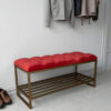 Gold Metal Rack: Strong, stable base with integrated shoe storage.