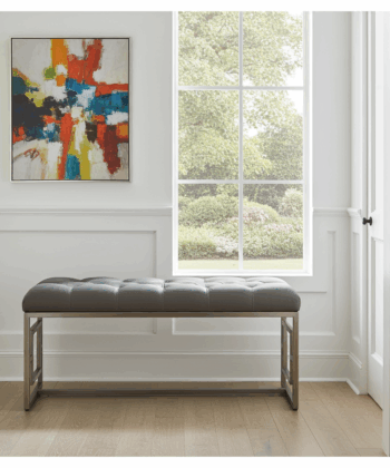 The bench displays sumptuous eco leather upholstery in sophisticated grey tones with classic button-tufted patterns across the generous seating surface. Subsequently, it delivers exceptional comfort and contemporary visual impact. Meanwhile, the neutral grey colour adds versatility and modern elegance to your space. Specifically, this timeless shade harmonises beautifully with both modern and traditional interior schemes. Therefore, it establishes a refined accent piece for diverse decorating approaches.
