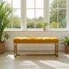 Gold Frame Velvet Metal Bench – Urban Chic, Rectangular, 100-30-50 cm