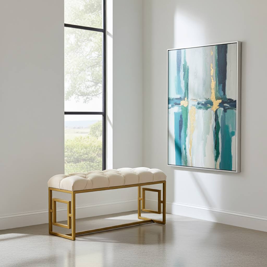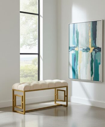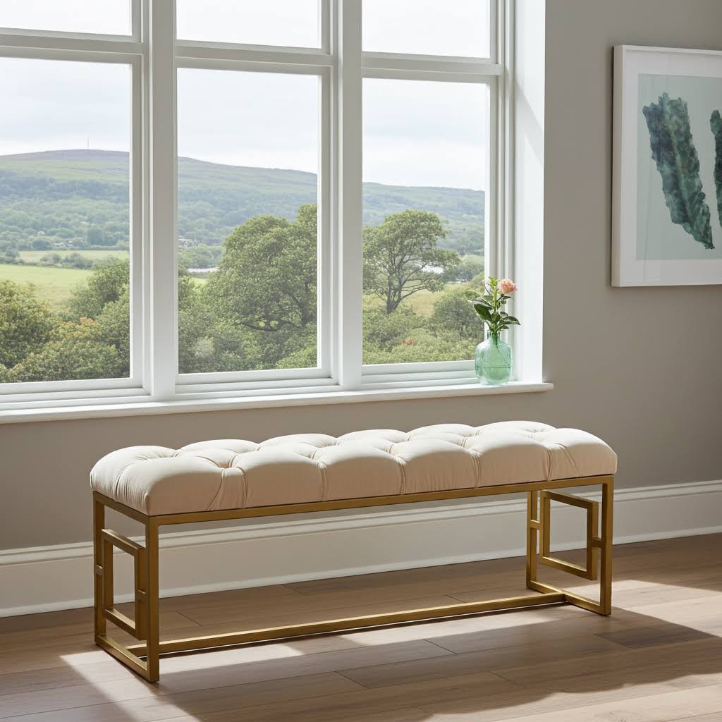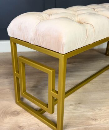 Modern Velvet Metal Bench – Gold Frame, Rectangular, Long