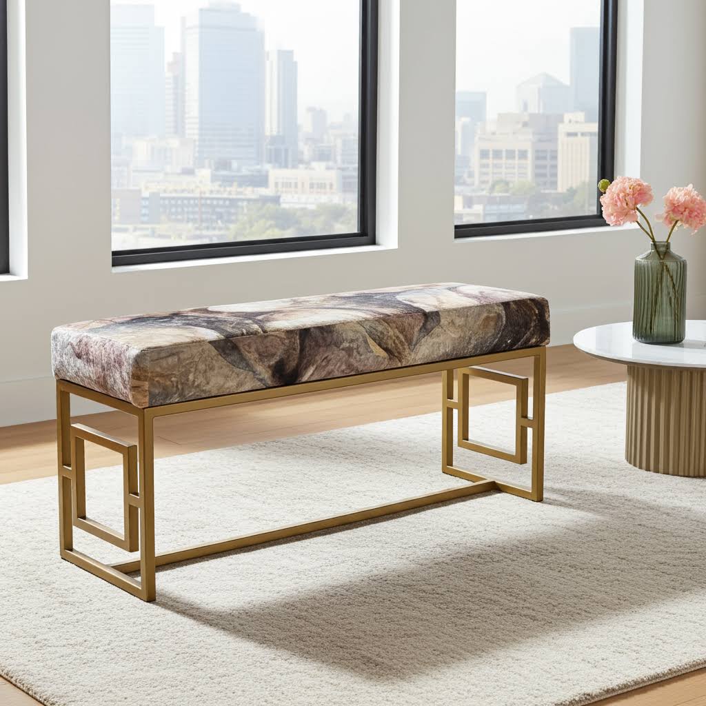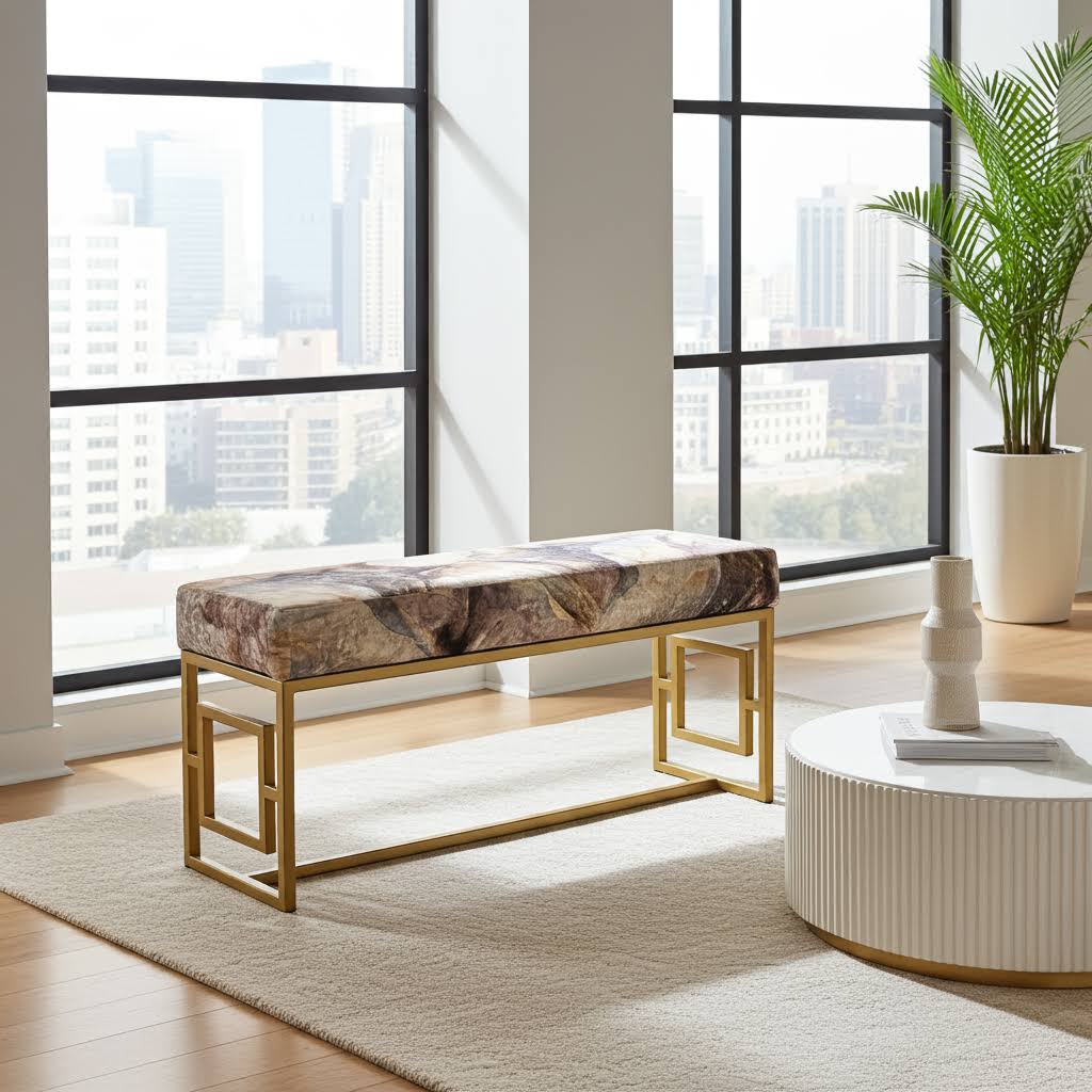 Elevate your interior with the Urban Chic Velvet Metal Bench – a unique blend of modern design, durability, and comfort. Each bench is fully handmade with meticulous attention to detail, ensuring the highest quality and a distinctive character. The sturdy, gold powder-coated metal frame offers a professional look and exceptional resistance to wear and tear, while the premium velvet upholstery provides softness and elegance.
