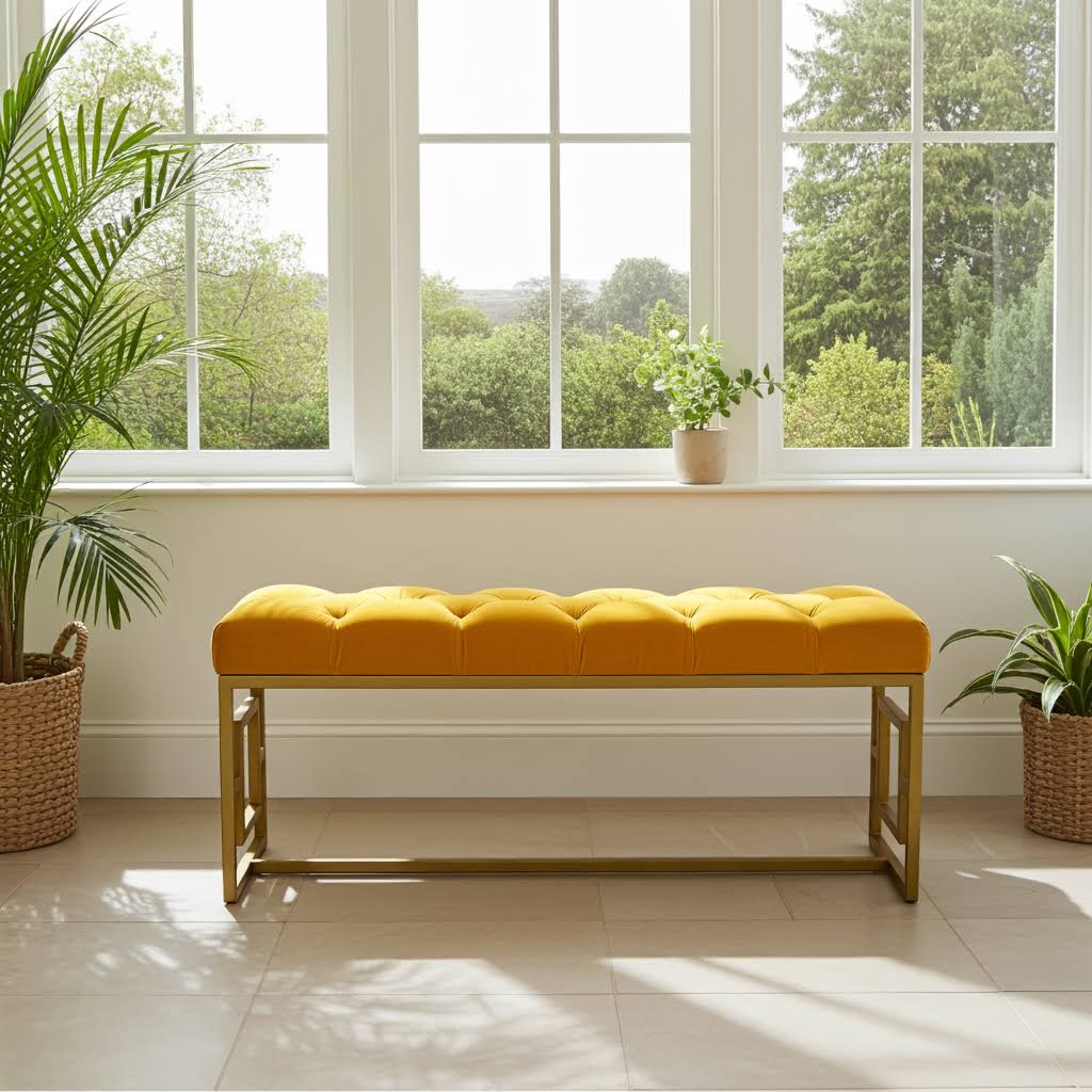 Elegant Stylish Velvet Metal Frame Bench – Gold Rectangular Ottoman, White, Black, Green, 100-30-50 cm