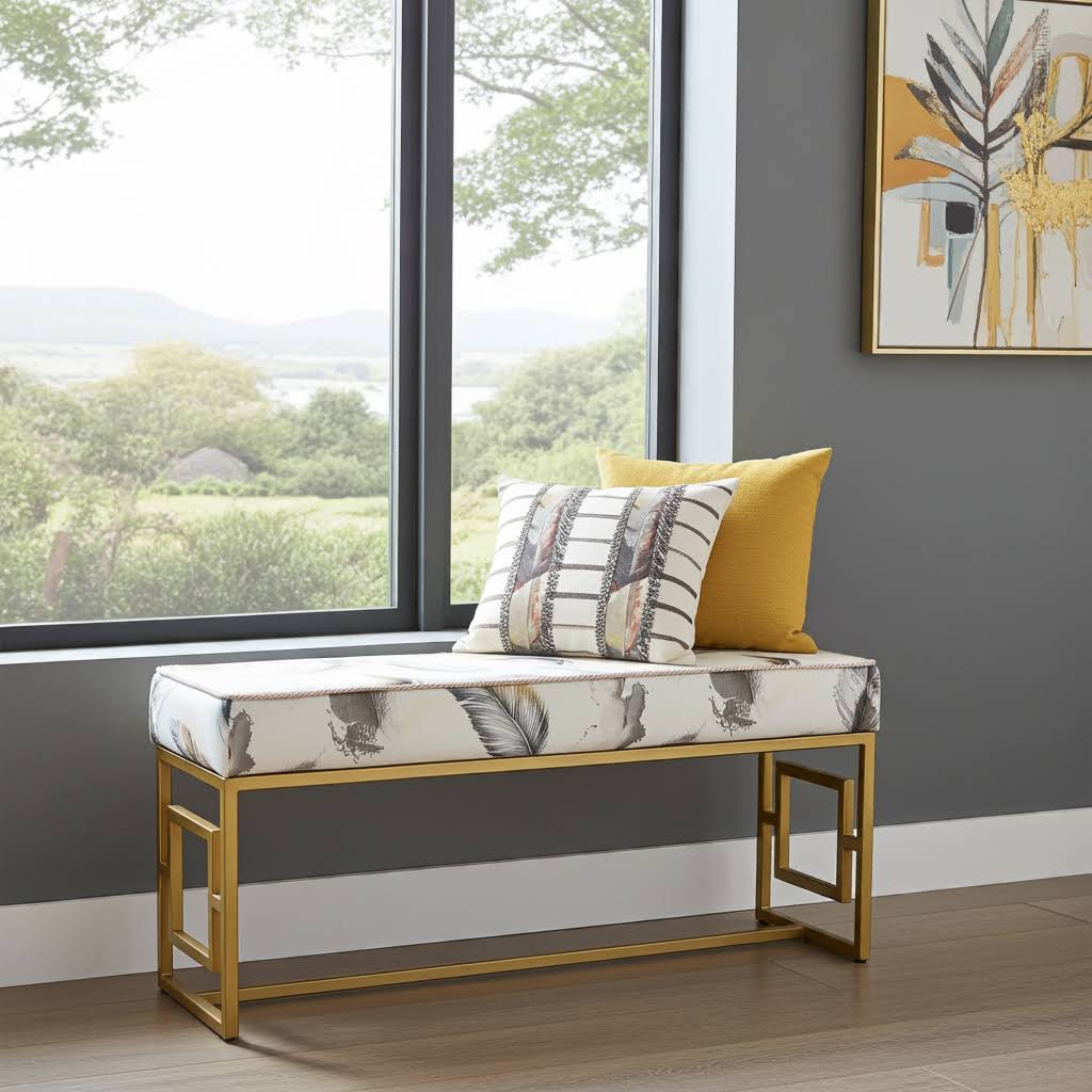Elegant Stylish Velvet Metal Frame Bench – Gold Rectangular Ottoman, White, Black, Green, 100-30-50 cm