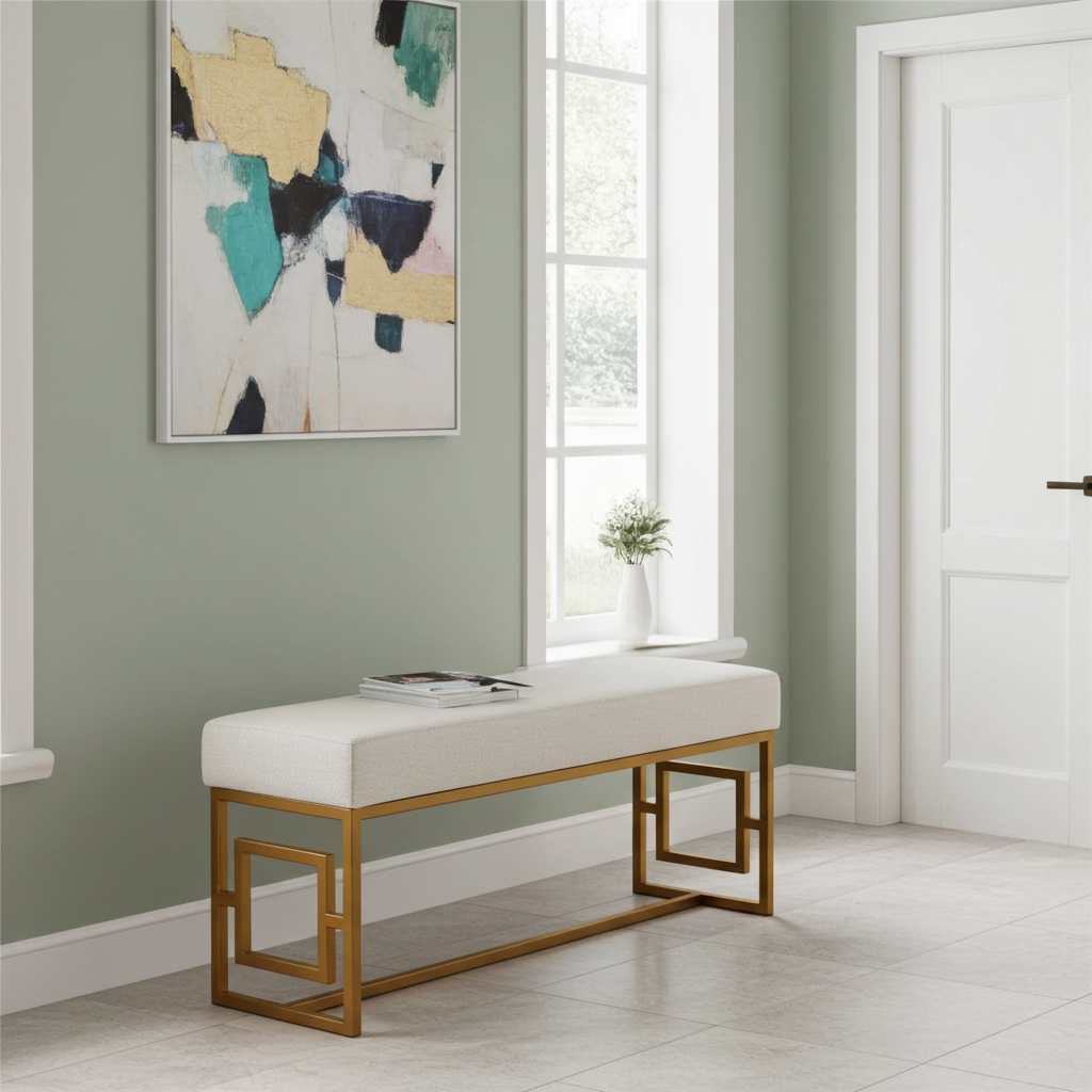 Elegant Stylish Velvet Metal Frame Bench – Gold Rectangular Ottoman, White, Black, Green, 100-30-50 cm