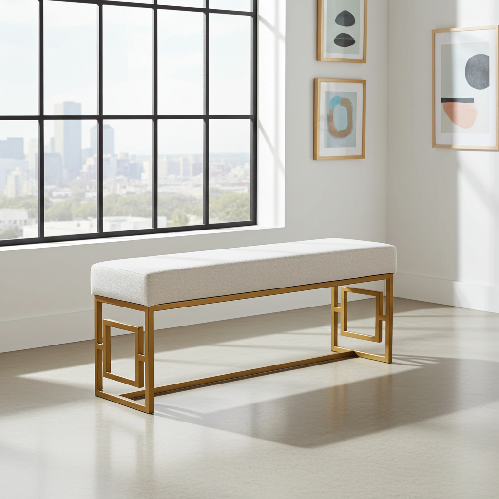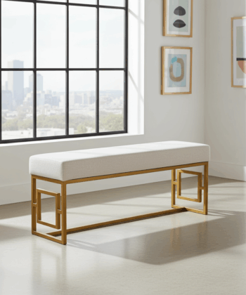 Elevate your interior with the Urban Chic Velvet Metal Bench – a unique blend of modern design, durability, and comfort. Each bench is fully handmade with meticulous attention to detail, ensuring the highest quality and a distinctive character. The sturdy, gold powder-coated metal frame offers a professional look and exceptional resistance to wear and tear, while the premium velvet upholstery provides softness and elegance.