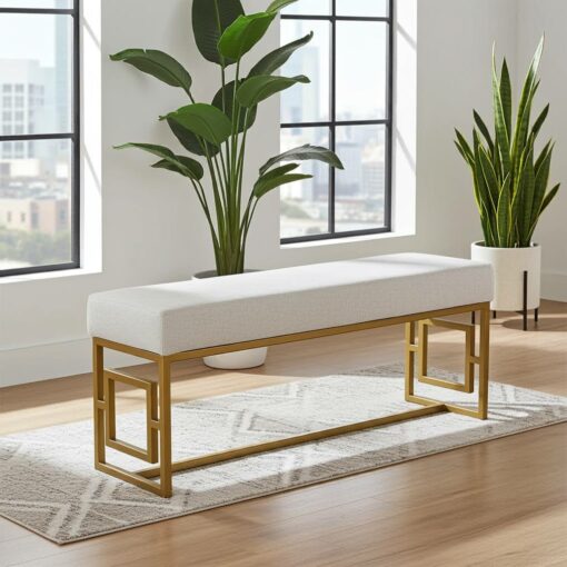 Elegant Stylish Velvet Metal Frame Bench – Gold Rectangular Ottoman, White, Black, Green, 100-30-50 cm