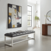 Premium Diamond-Tufted Beige Eco-Leather Bench with Modern White Steel Frame – Luxury Seating Solution for Contemporary Irish Homes