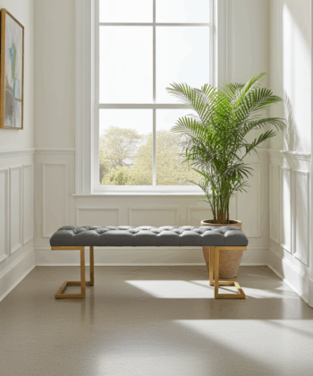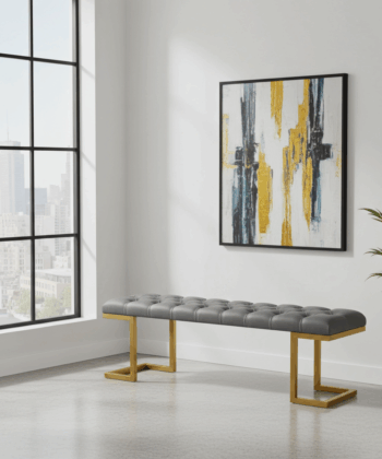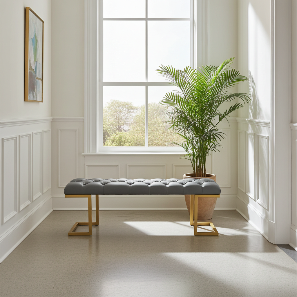 Premium Tufted Grey Bench with Gold Metal Frame for Modern Irish Homes