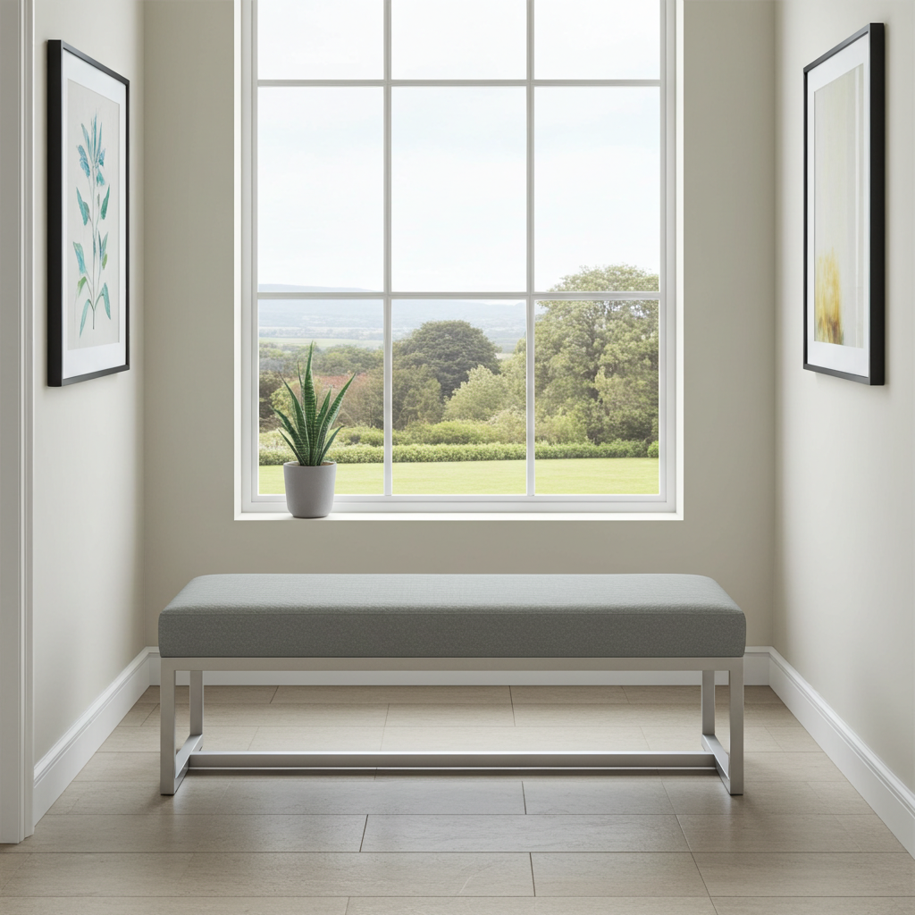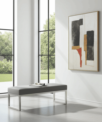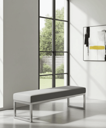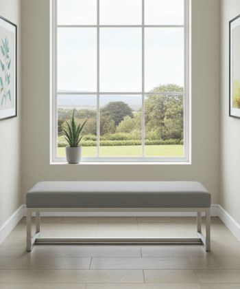 The bench showcases premium grey velvet upholstery that creates luxurious texture and visual appeal. Additionally, this high-quality velvet surface provides enhanced comfort and durability for daily use. Meanwhile, the white powder-coated steel frame ensures exceptional stability and contemporary appeal. Similarly, the clean geometric lines create a sophisticated aesthetic that perfectly complements modern Irish homes.