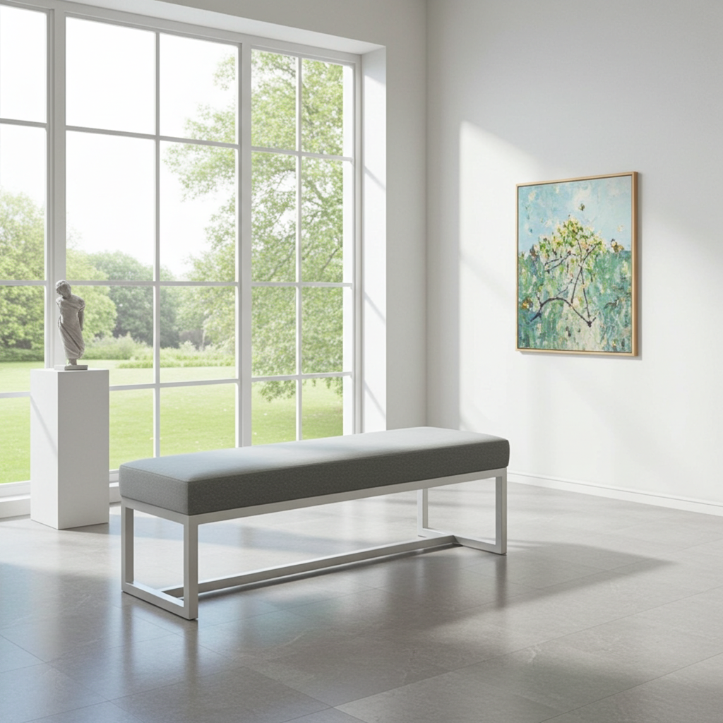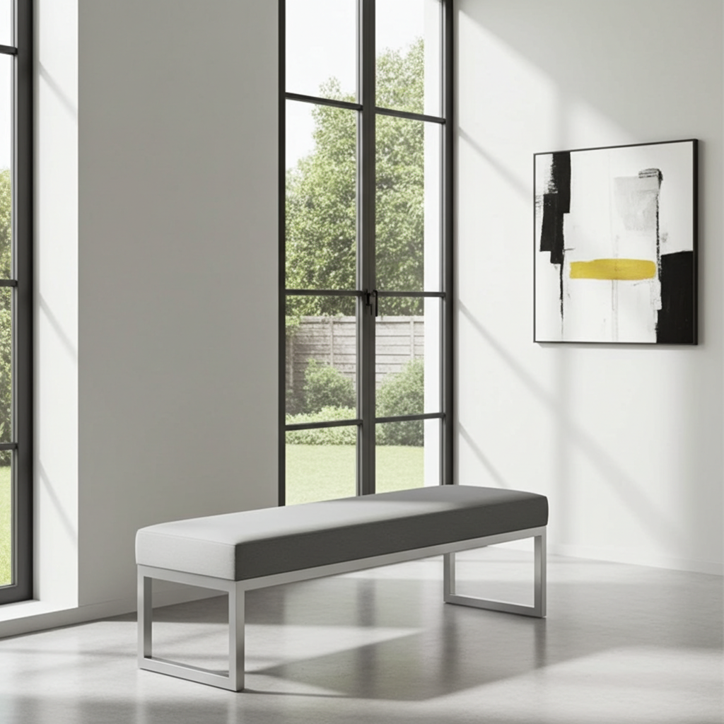 This exceptional grey velvet bench combines contemporary elegance with robust industrial construction. Moreover, it features premium velvet upholstery and a sleek white powder-coated steel frame. Additionally, the 140x40cm dimensions provide generous seating space for multiple users. Furthermore, the modern minimalist frame design adds architectural sophistication to any Irish interior space.