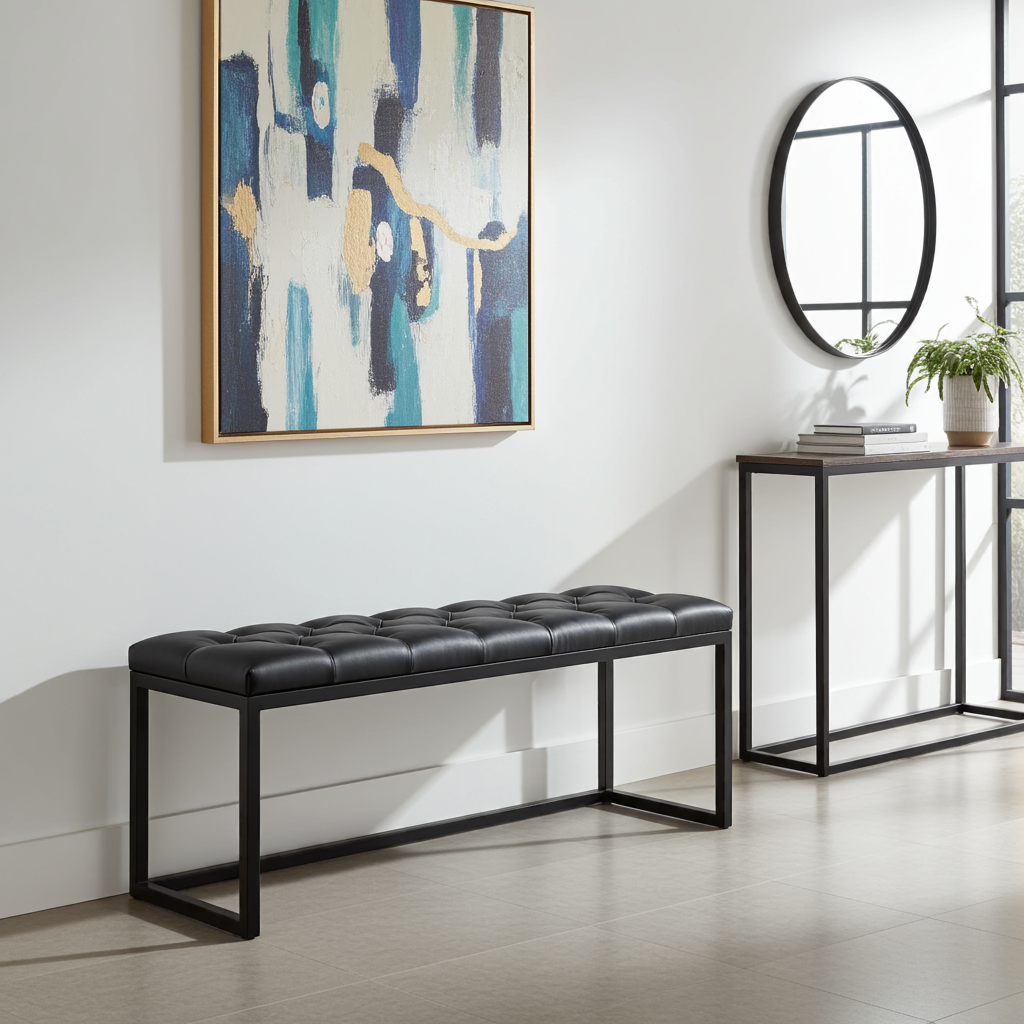 Premium Industrial Tufted Bench with Black Metal Frame for Modern Irish Homes