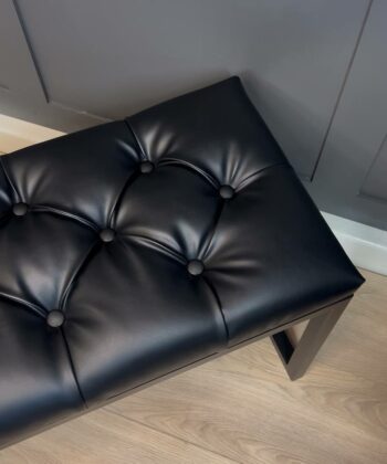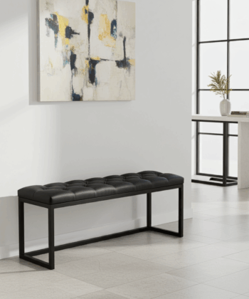 The bench displays a seamless black powder-coated metal frame crafted from a single piece. Additionally, this construction ensures remarkable stability and longevity. Meanwhile, the tufted eco-leather seat provides exceptional comfort and easy maintenance. Similarly, the industrial aesthetic perfectly complements modern Irish interiors.