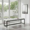This exceptional industrial loft bench combines minimalist design with superior functionality. Moreover, it features a single-piece black metal frame construction that eliminates visible joints. Additionally, the bench showcases elegant black tufted eco-leather upholstery. Furthermore, this 140x40cm bench offers remarkable durability with a 350kg load capacity.