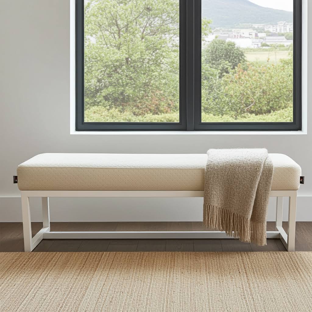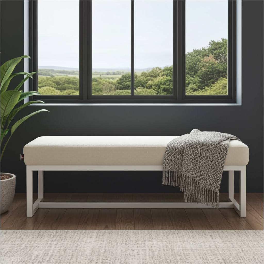 Premium Handcrafted Beige Fabric Bench with White Powder-Coated Steel Frame – Modern Seating Solution for Contemporary Irish Homes
