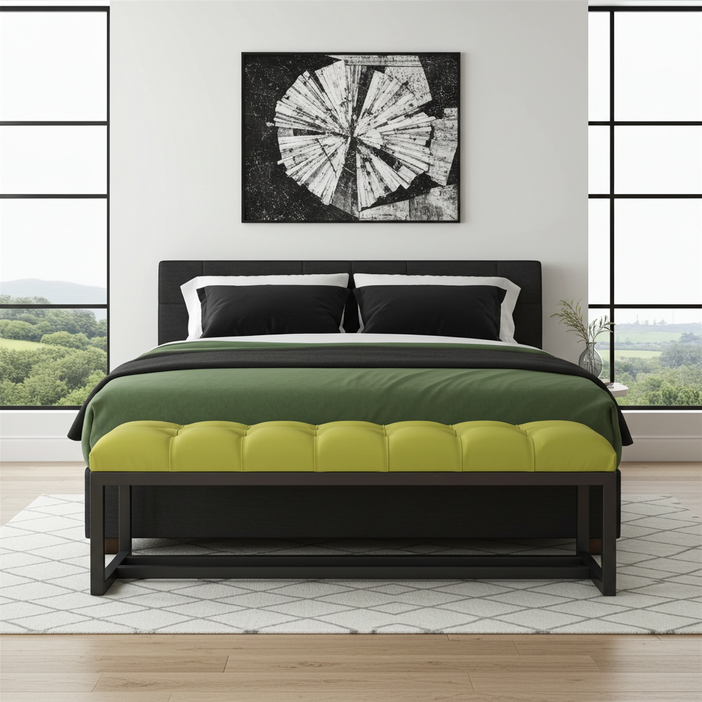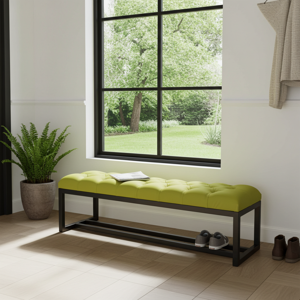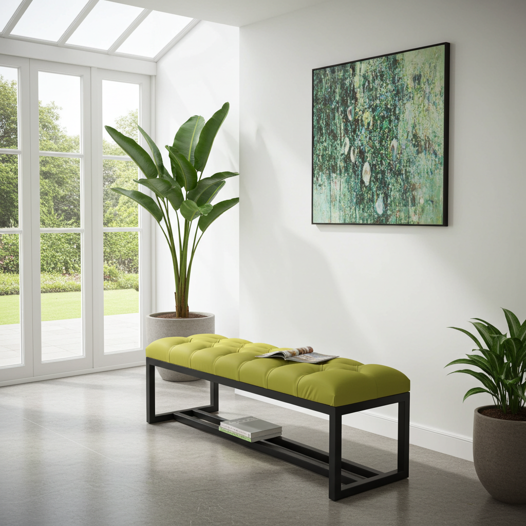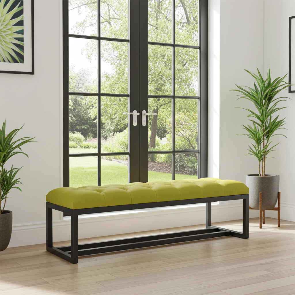 Premium Tufted Green Bench with Black Double Frame for Modern Irish Homes
