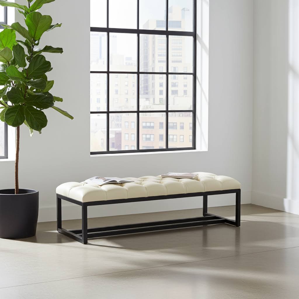 Premium White Eco-Leather Bench with Industrial Black Frame for Modern Irish Homes