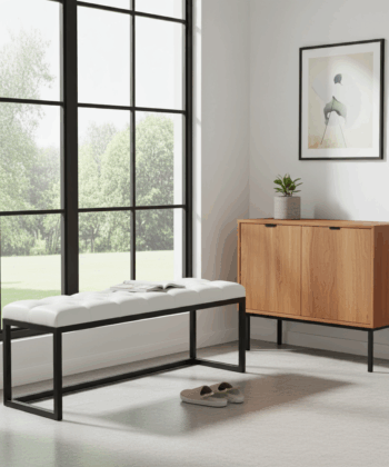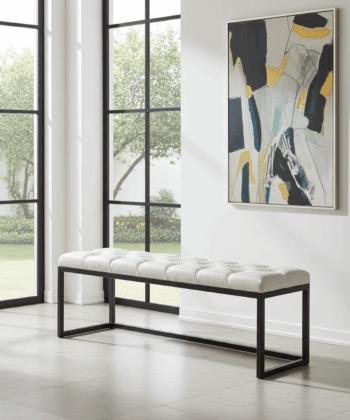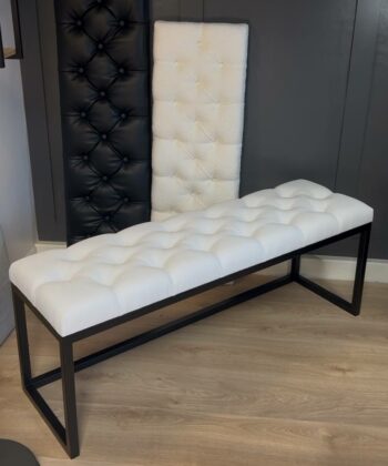 This exceptional loft-style bench combines minimalist design with superior functionality. Moreover, it features a single-piece black metal frame construction. Additionally, the bench showcases elegant white tufted eco-leather upholstery. Furthermore, this 140x40cm bench offers both style and remarkable durability for Irish homes.