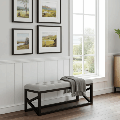 This versatile seating solution excels in narrow hallways, entryways, or as accent furniture in bedrooms and living areas. Furthermore, the compact width allows placement in tight spaces without compromising style or comfort. Also, the elegant proportions make it ideal for small Irish homes and apartments. Therefore, it bridges functional seating needs with sophisticated design aesthetics.