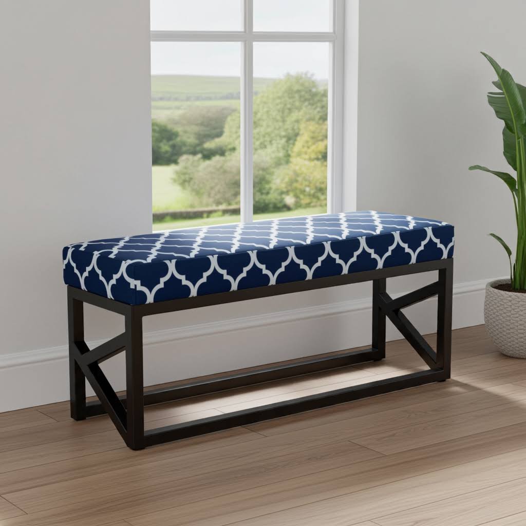 Navy Trellis Velvet Bench: Contemporary Sophistication for Irish Interiors