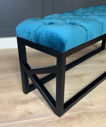 Premium Handcrafted Turquoise Diamond-Tufted Velvet Bench with Sleek Black Steel Frame – Vibrant Narrow Seating Solution for Contemporary Irish Homes