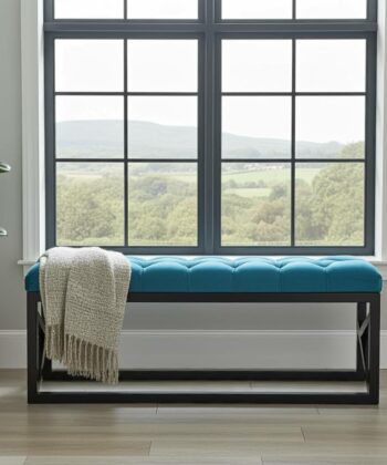 The bench showcases premium turquoise velvet upholstery with meticulous diamond-pattern tufting that creates sophisticated texture and visual depth1. Additionally, the bold turquoise tones provide eye-catching styling options that serve as statement pieces in various interior color schemes. Meanwhile, the black powder-coated steel frame ensures exceptional structural integrity and contemporary appeal. Similarly, the handcrafted construction delivers superior quality suitable for daily residential use and entertaining.