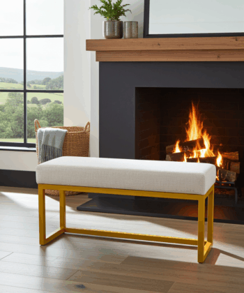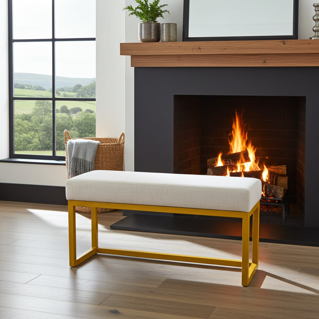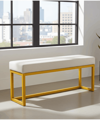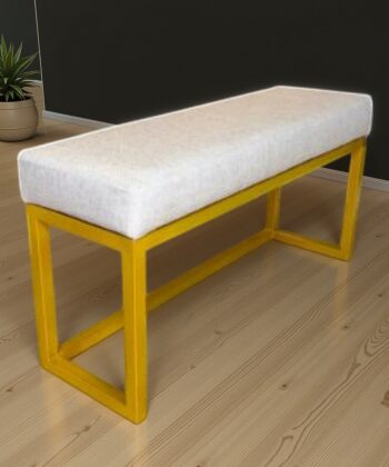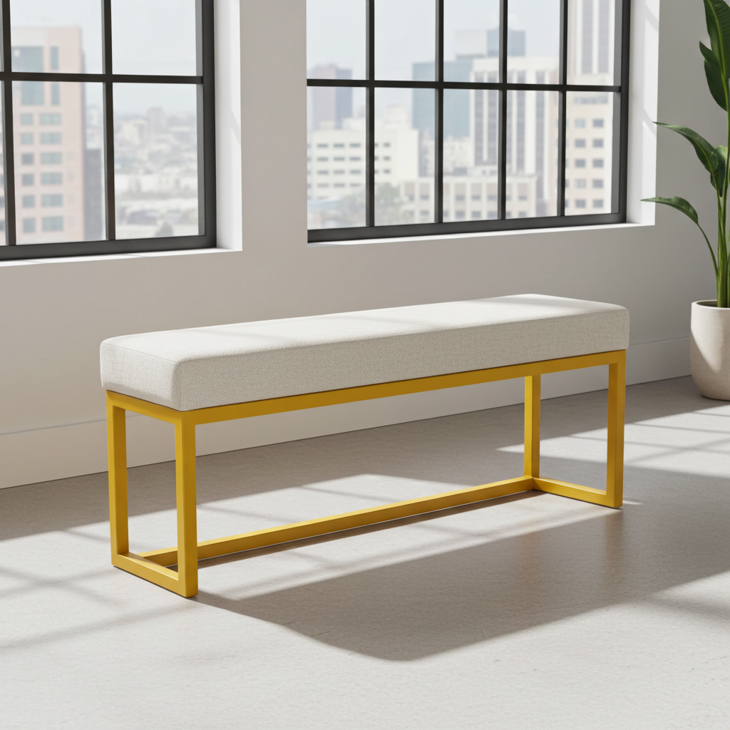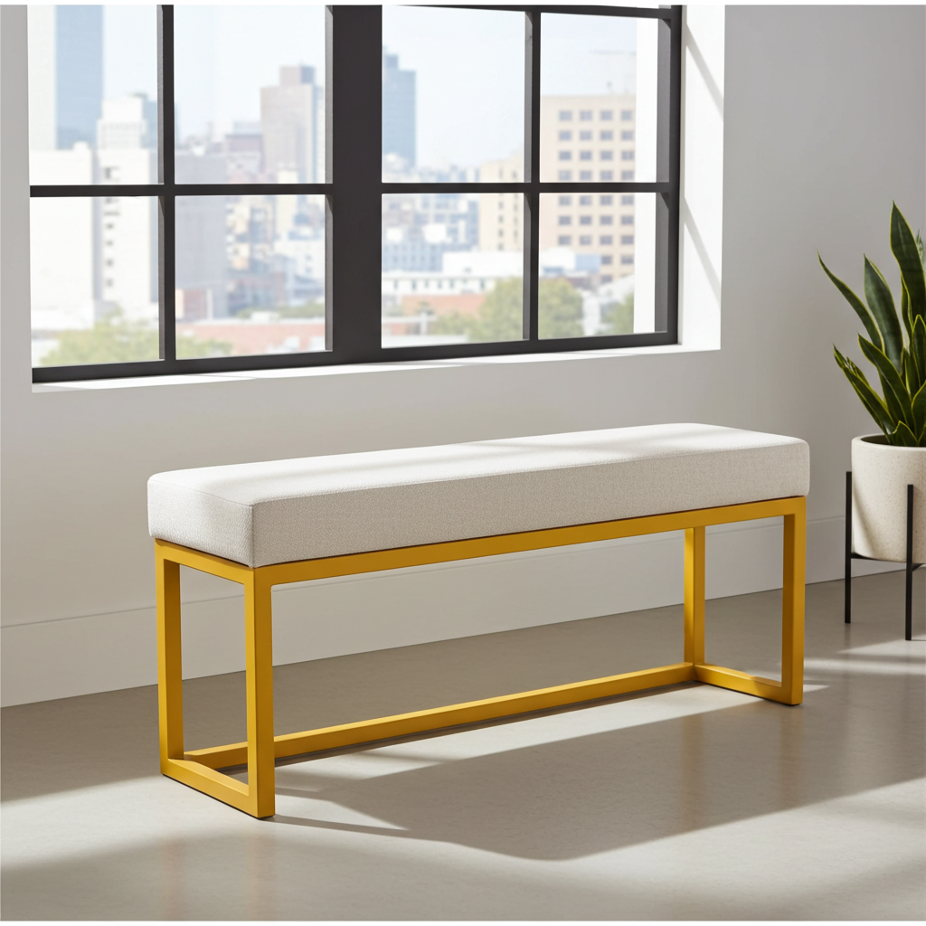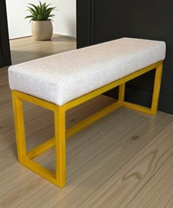 Modern Light Grey Bench – Yellow Metal Frame Seating