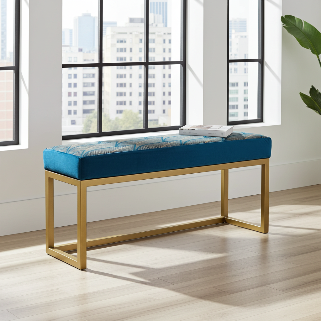 Art Deco Patterned Velvet Bench with Gold Metal Frame – UrbanChic Collection