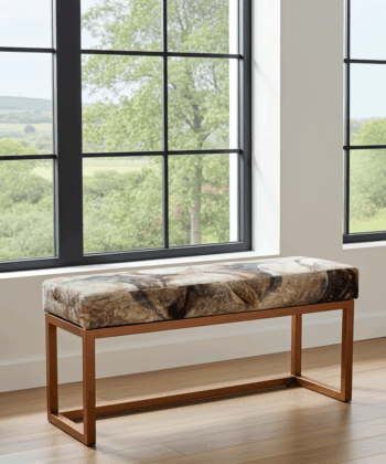 Handmade bench with a copper metal frame and stone-patterned velvet seat. Stylish, compact, and ideal for hallways, bedrooms, or living rooms.