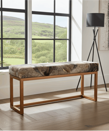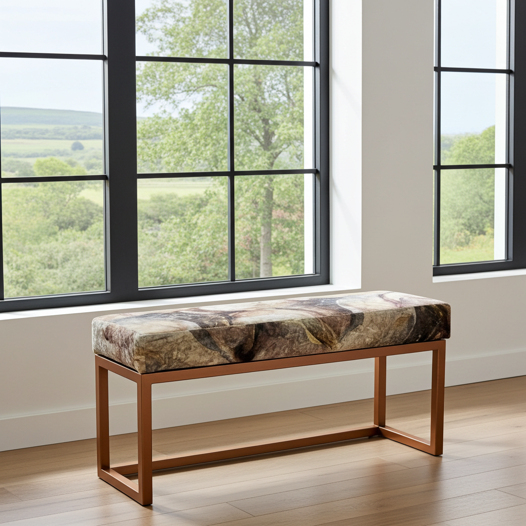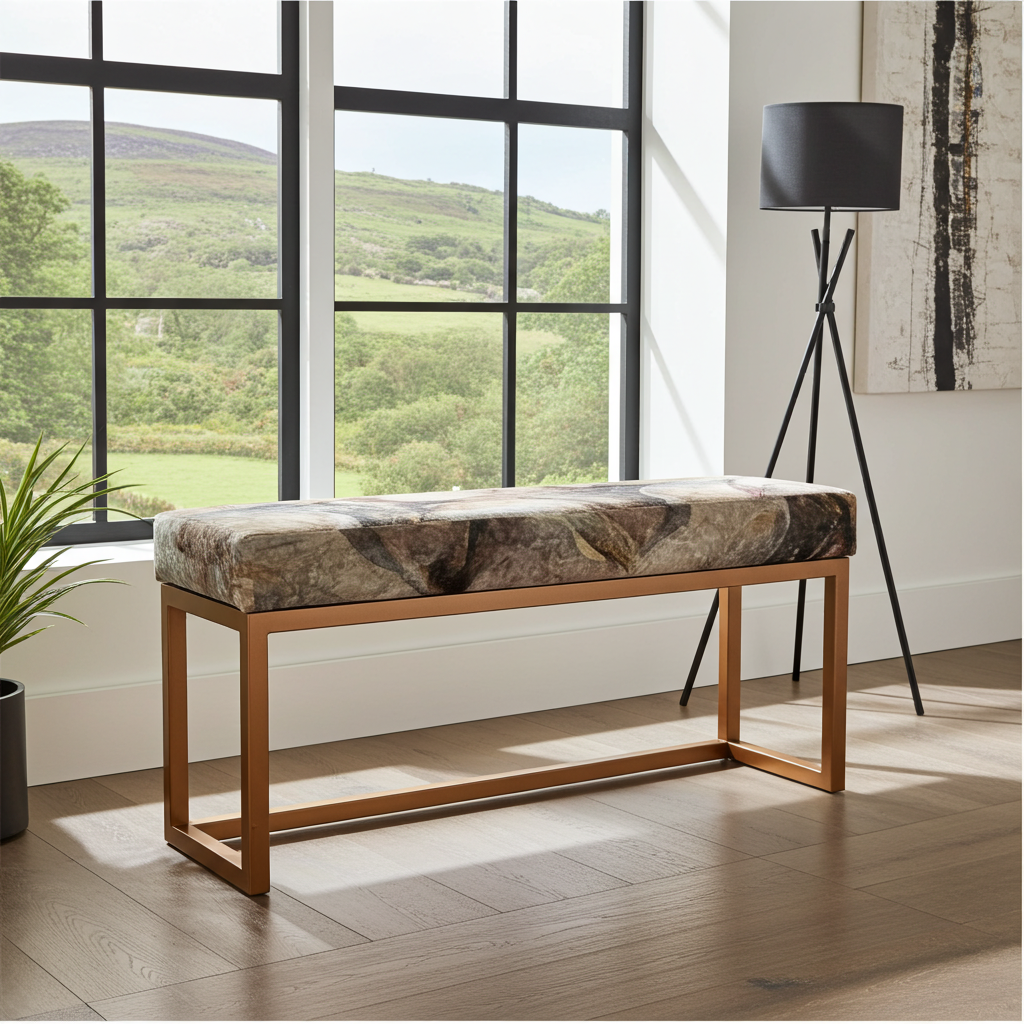 Stone Pattern Velvet Bench – Modern Copper Metal Frame Seating