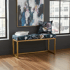 UrbanChic Blue Velvet Metal-Framed Bench 100x30cm – Yellow Frame