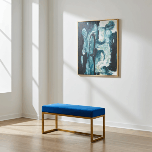 Brighten your home with the UrbanChic Blue Velvet Metal-Framed Bench 100x30cm, featuring a vibrant yellow powder-coated metal frame and a plush blue velvet seat. This bench is fully handmade, so you can expect exceptional craftsmanship and attention to detail. The premium velvet upholstery not only offers a luxurious feel but also ensures comfort and durability for everyday use.