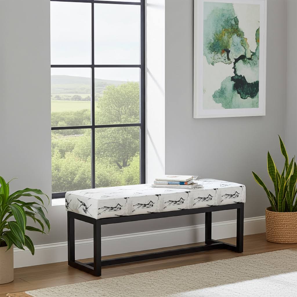 In addition, the compact size allows you to place it easily in hallways, bedrooms, or living rooms. The stable construction and ample seating provide comfort and functionality. For example, you can use this bench as extra seating, a hallway accent, or a stylish entryway solution. Moreover, the artistic upholstery and minimalist frame work together to create a standout accent piece that fits many interior styles. Therefore, whether you need extra seating or a focal point, this bench will elevate your space.